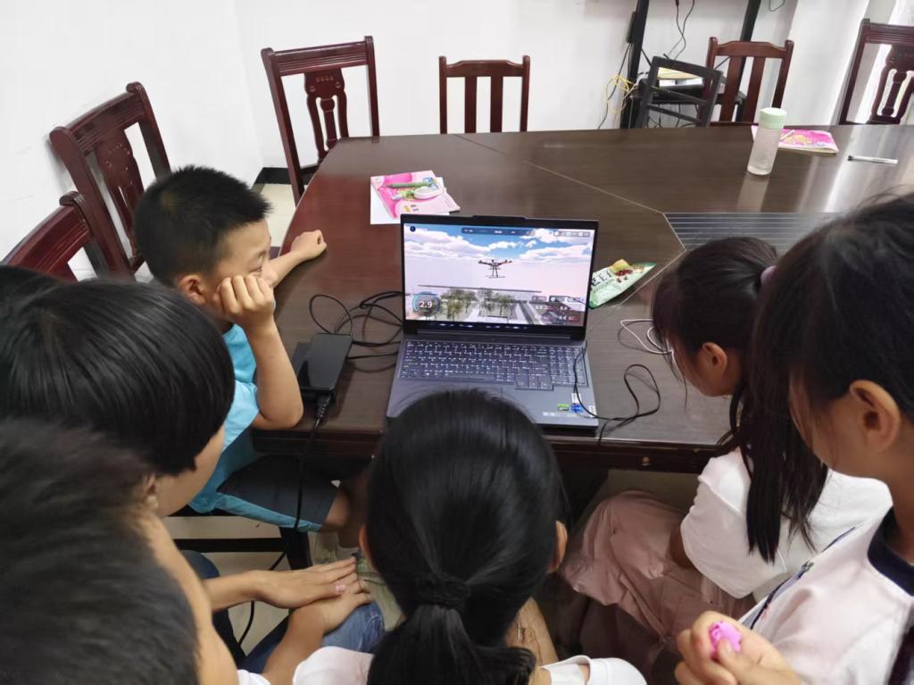“翱翔蓝天”点燃飞行梦想:在引人入胜的无人机课堂上,志愿者用生动的语言和动态示意图,为孩子们揭开了“铁鸟飞天”的奥秘。从升力原理到遥控信号传输,孩子们听得全神贯注。虚拟飞行训练让他们在电脑上熟练掌握了起降、悬停和转向技巧。最激动人心的莫过于实机操作环节。在志愿者手把手的指导下,孩子们紧握遥控器,操控着银灰色的小型无人机在操场上空划出流畅弧线。仰望无人机翱翔于湛蓝天空,螺旋桨的嗡鸣与孩子们的惊叹交织,飞行的梦想在此刻悄然生根。