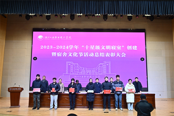 会上,对2023-2024学年“十星级文明寝室”创建暨宿舍文化节活动先进集体和个人进行表彰;对2024-2025学年“十星级文明寝室”创建暨宿舍文化节活动进行安排部署;旅游商贸学院周凡淼同学代表校团委、学生会宣读了《寓馨寓净“宿”说美好——“十星级文明寝室”创建活动倡议书》。