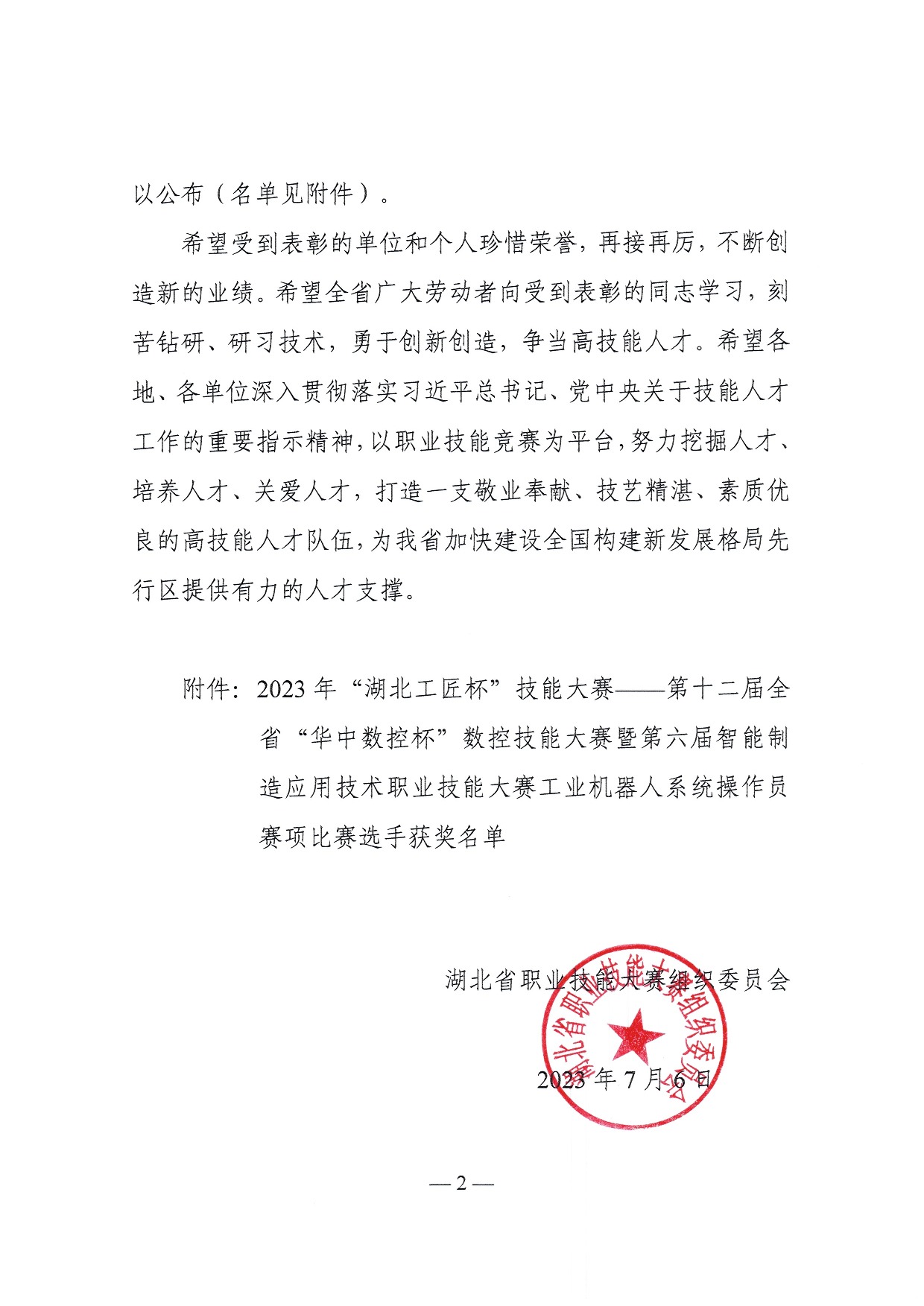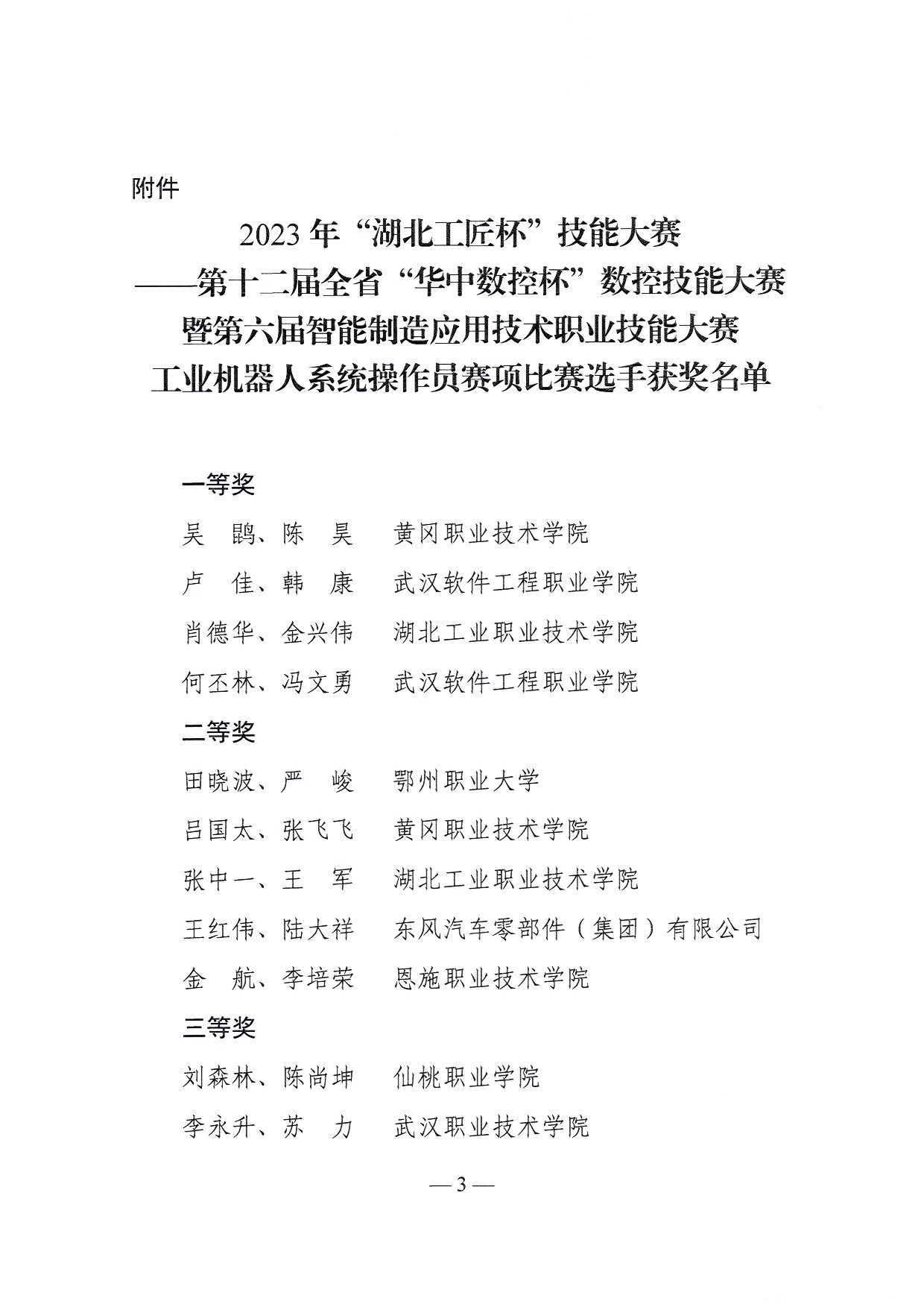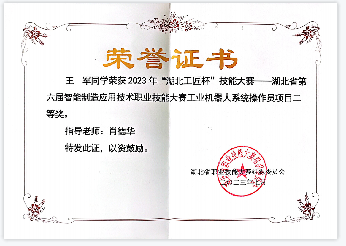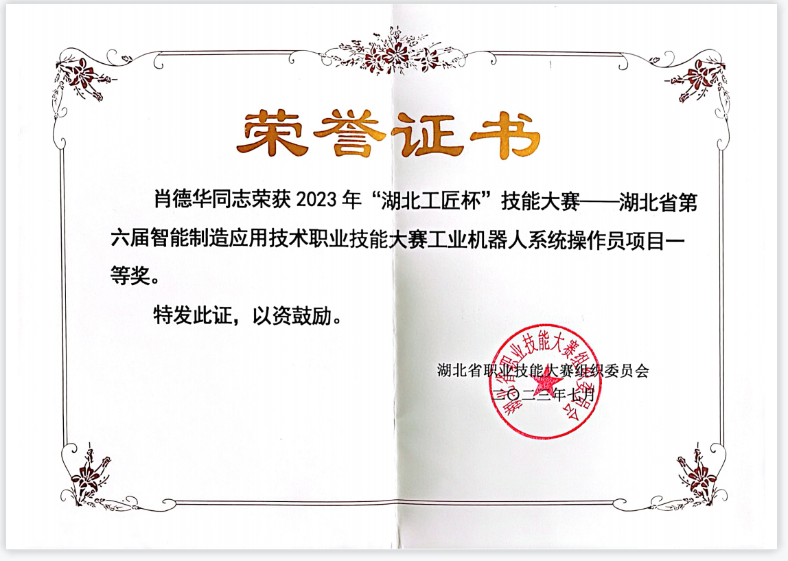 新闻网讯(通讯员薛嘉鑫)近日,从湖北省职业技能大赛组织委员会处获悉,365英国上市公司官网肖德华、金兴伟两位老师获“2023年‘湖北工匠杯’技能大赛”工业机器人系统操作员赛项一等奖。