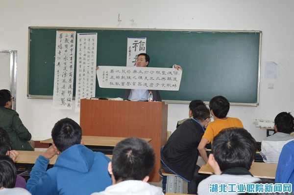 李戬是十堰市书法协会会员,他的作品多次获奖,曾获第七届“中华杯”全国书法大赛三等奖、湖北省第一届艺术节书法作品参展作品等奖项。为提高工科学生的人文艺术素养,机电工程系专门邀请李戬老师进行书法艺术鉴赏和技巧讲解。