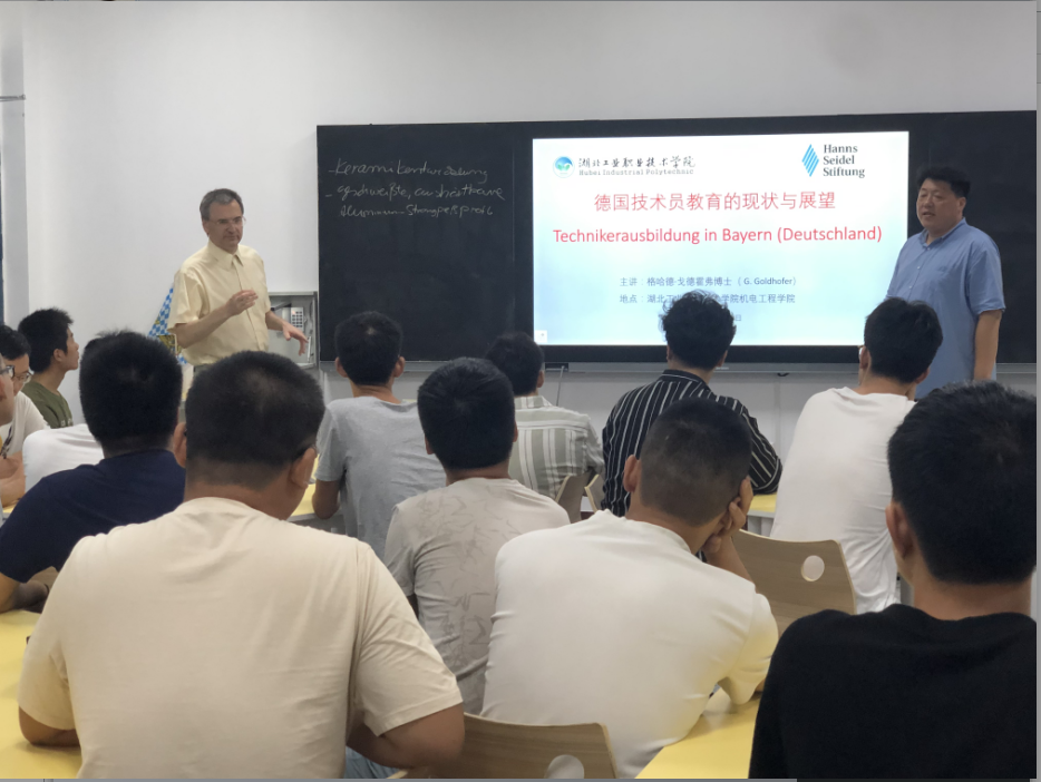 接下来,格哈德·戈德霍弗博士介绍了因戈施塔特技术员学校的教学体系和教学模式等情况,以及未来对365官网的合作计划,中德技术员的同学们对自己未来与德国学校合作交流的可能性表示非常期待。