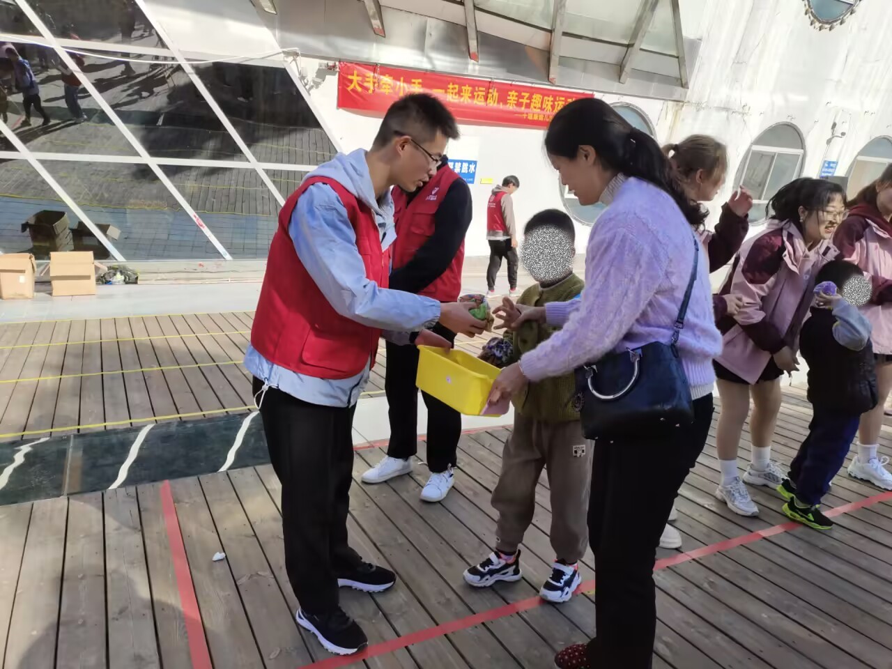 一大早,30名志愿者早早来到活动现场,根据主办方的安排,将运动会场地布置妥当。伴随着小朋友们的欢呼声,我抛你接、小兔跳圈、小鸡下蛋、推独轮车、拔河等运动依次开展,孩子们在家人及志愿者的带领下体验着运动的快乐和竞争的乐趣,随着精彩的比赛一场接着一场,这些来自星星的孩子们参与的热情越来越高涨,慢慢变得大胆、自信起来,活动现场一幕幕精彩瞬间尽情展现。