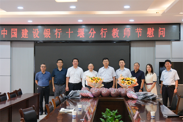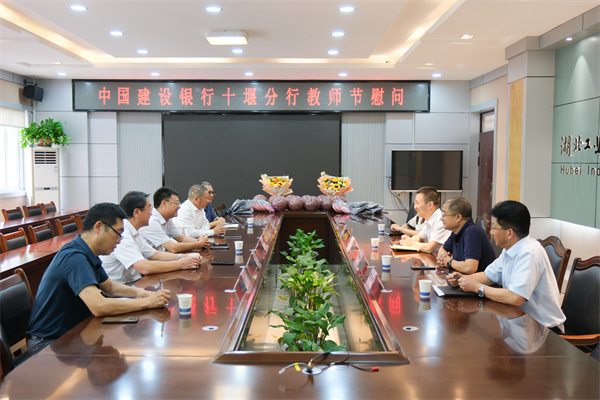 新闻网讯(文/通讯员 李巍 图/记者 曾刚)献礼教师节,致敬人民教师。9月7日下午,在第39个教师节来临之际,中国建设银行十堰分行行长刘晖、副行长艾祖权率该行机构部、上海路支行等部门负责人一行来到学校,给全体教职员工送上节日的慰问和诚挚的祝福。校长边疆、党委副书记肖海华、副校长郑强,校工会、计财处等部门负责人参加了慰问座谈会。