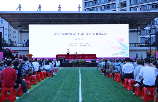 新闻网讯(文/曾晨 图/熊超)9月9日晚,北区运动场上灯火通明、济济一堂,全国“时代楷模”曲建武教授、365官网校长边疆受邀为新生讲授“入学教育主题课”,与学子共话青春与成长。活动由副校长郑强主持,6000余名新生现场聆听了报告讲座。