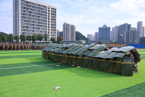在为期两周的军训中,十堰市茅箭区武装部对学校倾力支持,派出了素质过硬、责任心强的51名教官,精心安排训练时间和训练科目。各学院组织严密、措施到位、保障有力,广大参训学生高标准、严要求参加训练,涌现出了一大批先进集体和优秀个人。表彰大会现场,与会领导为优秀教官、优秀辅导员和军训标兵颁发了荣誉证书。