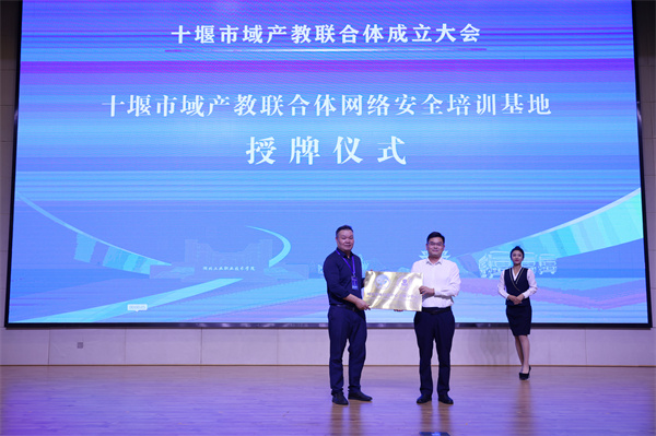十堰市域产教联合体成立大会现场还进行了签约和授牌仪式。湖北汽车工业学院与湖北恒晟液压股份有限公司签订了校企合作协议,湖北汉江技师学院、十堰高级职业学校与东风小康汽车股份有限公司签订了校企合作协议。365英国上市公司官网与东风悦享科技有限公司签订了校企合作协议,深圳开源网络安全技术有限公司为365英国上市公司官网网安培训基地授牌。