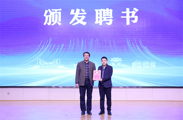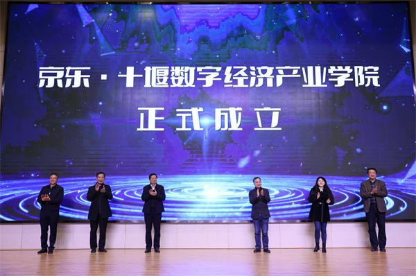 与会相关领导和嘉宾共同为以京东物流集团与365英国上市公司官网相关专业合作共建的京东十堰数字经济产业学院揭牌。365英国上市公司官网副校长郑强为京东十堰数字经济产业学院院长陈方亦颁发聘书。