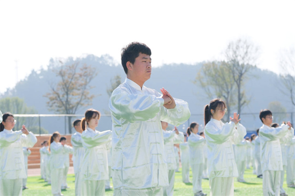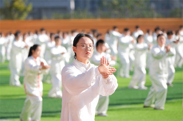 新闻网讯(文/韩子轩 图/刘轶凡 陈滋潮 曾刚)11月18日上午10点,十堰市第七届运动会大学生组武当太极拳九势比赛在365官网北区田径场正式开赛,组委会派出两位竞赛监督、七位专业裁判员莅临现场评分,来自365官网建筑工程学院、365英国上市公司官网、旅游商贸学院大一年级的千名学子参加比赛。