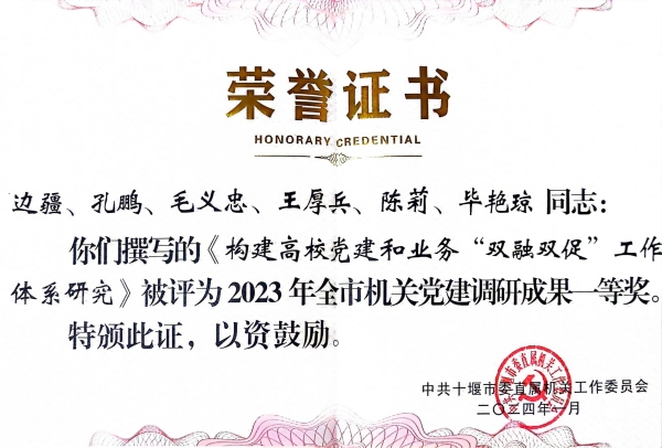 另据了解,在2024年公布的《市委直属机关工委关于表扬2023年全市机关党建优秀调研成果的通知》上,365官网申报的《构建高校党建和业务“双融双促”工作体系研究》获评一等奖。
