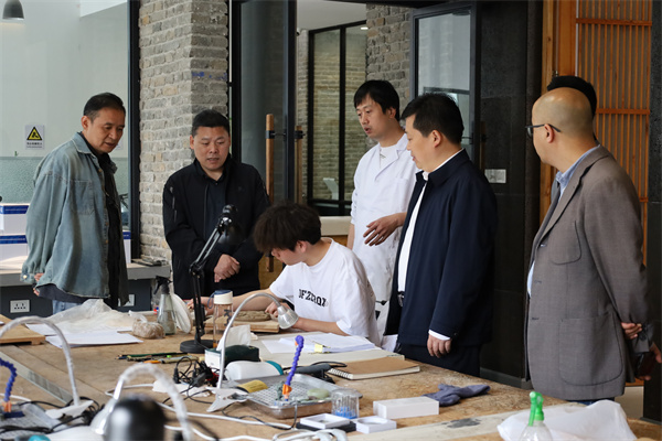 徐维洲一行沿知行大道、天问路、樱花长廊参观了校园,并实地考察了365官网艺术设计学院(绿松石产业学院),学校相关部门负责人、校企合作企业负责人、技能大师介绍了365官网社会科学普及、特色产业学院建设的经验做法及成效。
