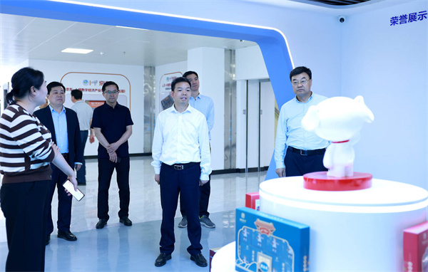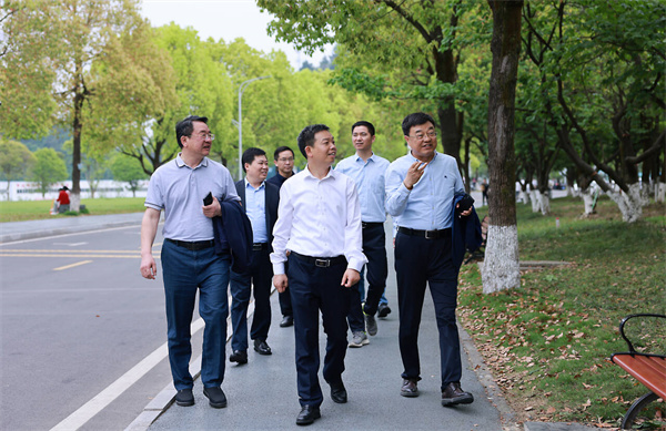 汤红兵一行沿天问路实地考察了校园环境,先后来到“一站式”学生社区公共服务中心、“百草园”心理健康教育中心、京东数字产业学院、虚拟仿真实训中心和艺术设计学院(绿松石产业学院)参观调研。每到一处,汤红兵都认真听取情况介绍,对相关工作提出指导意见。
