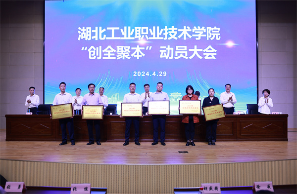 与会校领导为全省党建工作样板支部、全省平安校园建设工作成绩突出的两个集体代表,全国教师教学能力大赛获奖个人、全国职业院校技能大赛获奖指导老师、“互联网+”大学生创新创业大赛国赛获奖指导老师、全国“三下乡”实践示范团队指导老师、“创青春”青年创业大赛优秀奖指导老师、校联会“金课”“金师”团队负责人、“一校一课”展示活动课程负责人、2023年湖北省职业院校技能大赛获奖个人和指导老师、湖北省技能大师工作室负责人、湖北省技术能手、第一届全国大学生职规大赛指导老师、湖北省职业生涯咨询特色工作室负责人、2023年暑期“三下乡”社会实践活动优秀团队指导教师,以及2023年招生工作中取得突出成绩的集体和个人颁发了奖牌和荣誉证书。