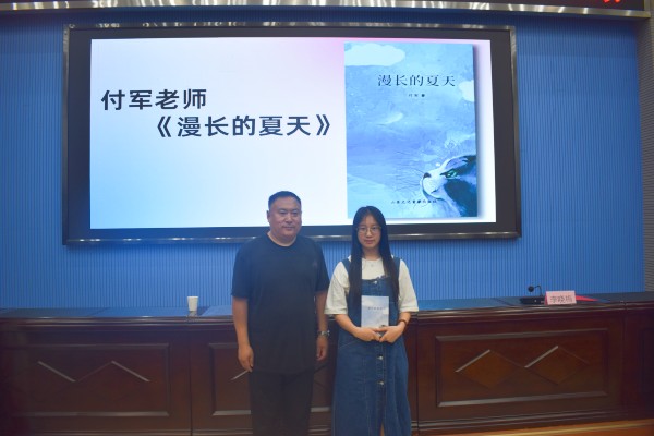 作为十堰首部“二汽”题材小说,《漫长的夏天》以1987年“二汽”48小学4年级学生刘东风的视角,讲述了那个暑假发生在他身边的故事。小说以深沉的情感、动人的故事,反映了“二汽”八九十年代的光辉岁月,不但勾起了老一代十堰人、“二汽”人的岁月情怀,也让年轻人对自己的城市,有了感性的了解。作者付军老师以其独特的笔触,带领读者走进了一个充满挑战与机遇的夏天,让读者深刻感受到了生活的酸甜苦辣。 付军老师就《漫长的夏天》小说的文学特色、主题思想、写作技巧等方面进行了分享。他鼓励同学们多阅读、多思考,不断拓宽自己的视野和知识面,为写作积累更多素材和灵感。