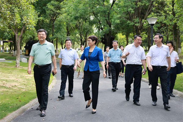 新闻网讯(文/孔鹏 图/熊超)6月11日下午,十堰市政府副市长朱云慧率市政府办、教育局、财政局、人社局、自建局、编办等部门负责同志来365官网现场调研指导工作。校长边疆率副校长郑强、胡昌龙和有关部门负责人参加调研。