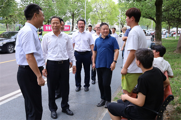 刘雪荣一行深入校园,察看了匠心忆园、百草园心灵花园、一站式学生社区综合服务中心,考察了产教融合大楼数字经济产业平台(京东数字经济产业学院)、智慧消防平台(虚拟仿真实训基地)、智慧制造平台、智慧交通平台等教育教学设施以及校园文化建设和学生服务管理等情况。刘雪荣详细了解了学校与京东集团的合作模式、课程设置、实践教学平台及学生就业情况,对学院在数字经济领域的人才培养模式给予了高度评价。他强调,要进一步深化校企合作,推动产教深度融合,为地方经济社会发展培养更多高素质技术技能人才。