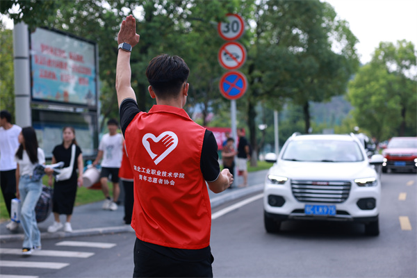 新生到达学校后,学校每一处点位也都设置有志愿者。与此同时,还在校园内设置了接送新生专用车,新生进入校园即可乘坐该车前往体育馆办理入学手续。(部分图片由相关二级学院提供)