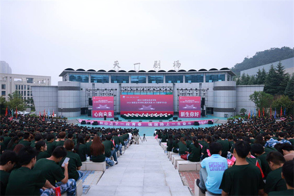 在2024级新生入学宣誓仪式环节,七名来自各二级学院的新生代表带领2024级新生宣誓。“我们是2024级新生,我们将秉承明德自强敬业崇技校训,志存高远,珍惜韶华,奋发有为,匠心铸魂,敢于争先,服务人民,奉献祖国,为实现中华民族伟大复兴而努力奋斗。”