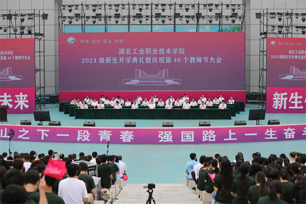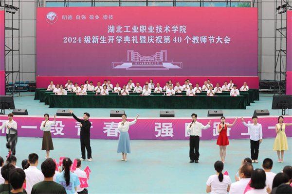 “展开双翅,去奔跑,像个孩子,写下你的名字,在风中化成诗……”在合唱的《奔赴》歌曲声中,湖北工业职院2024级新生开学典礼暨庆祝第四十个教师节大会圆满结束。