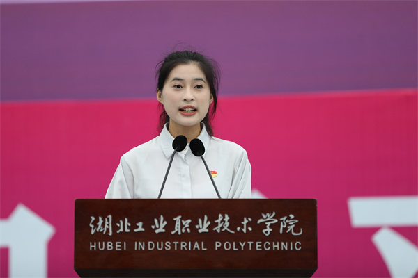 “给青春发一份请柬,邀约在美丽山水间,给时代交出一份答卷写下豪迈壮美诗篇……未来就在你我的身边,胸怀天下拥抱明天。”“当我和你们一样,第一次踏进湖工职院的校门,我梦想着成为一名设计师,用捕光捉影的画笔定格奇妙的创意,让客户真正接受我的理念和设计方案,做到设计让生活更美好……”歌舞《青春遇见》和诗朗诵《今天,我想对你说》将现场气氛拉到高潮。