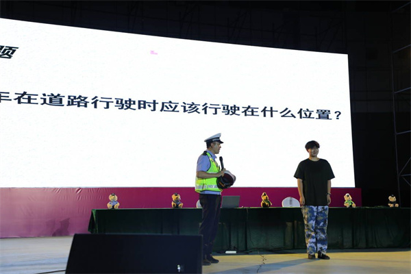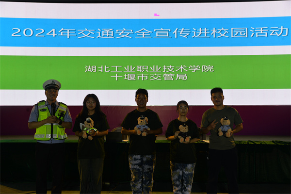 十堰市交管局交警五大队陈雄胜警官以《文明出行,安全回家》为主题,用生动的语言和大量的案例让学生了解掌握正确的交通行为准则,避免违法违规行为,共同维护良好的交通秩序。特别是有奖问答环节,通过提问的方式与学生互动,答对者给予小礼品奖励。学生踊跃参与,既活跃了宣讲氛围,又加深了大学生对安全出行、酒驾醉驾的认知和印象,受到学生欢迎。