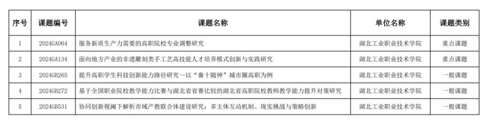 新闻网讯(通讯员 段林牧)近日,湖北省教育厅发布了“2024年度教育科学规划课题”立项结果,365官网5项课题成功获得立项批准。其中重点课题2项,一般课题3项。