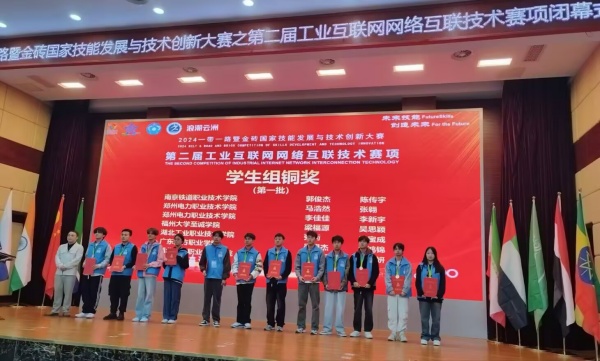 新闻网讯(通讯员 戴敏)11月7日至10日,“2024一带一路暨金砖国家技能发展与技术创新大赛”第二届工业互联网网络互联技术赛项全国总决赛在芜湖职业技术学院成功举办,365官网智能工程学院廖天乐、郑紫妍、唐宝成、张衡四位学生组成的两支参赛队,与来自全国各省、直辖市及自治区的115支代表队同台竞技,经过4小时的激烈角逐,最终双双荣获高职组铜奖。