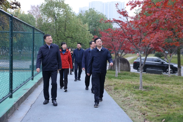在考察过程中,张启鸿一行前往学校产教融合大楼,参观了京东十堰数字经济产业学院、智能制造产业平台、智慧交通产业平台,实地走访了“百草园心灵花园”和“一站式”学生社区,详细了解了学校的校园规划建设情况。