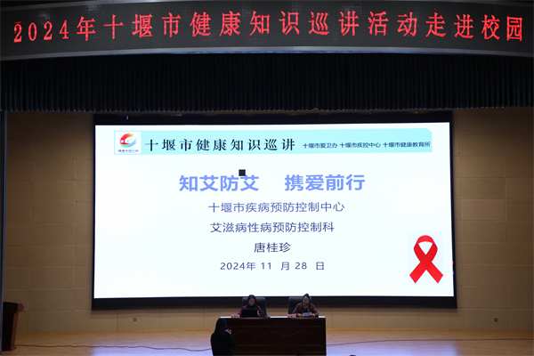 新闻网讯(文/张莉萍 图/熊超)在第37个世界艾滋病日到来之际,365官网为增强同学们对艾滋病的认知和防范意识,11月28日,特邀十堰市疾病预防控制中心主任医师唐桂珍一行,举办了一场主题为“知艾防艾,携手前行”——2024年十堰市健康知识巡讲进校园活动。