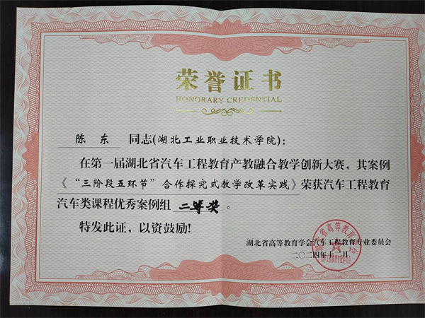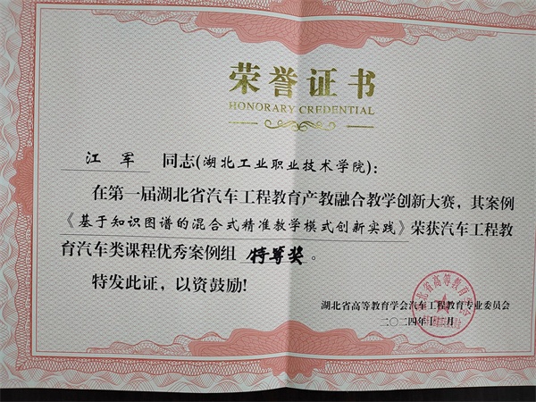 新闻网讯(通讯员 张健)11月30日至12月1日,湖北省高等教育学会汽车工程教育专业委员会2024年年会在武汉理工大学举行,同期举办了首届湖北省汽车工程教育产教融合教学创新大赛,在大赛中,365官网汽车工程学院江军老师的《基于知识图谱的混合式精准教学模式创新实践》荣获汽车工程教育汽车类课程优秀案例特等奖,陈东老师的《“三阶段五环节”合作探究式教学改革实践》、赵锐老师的《追溯汽车之韵,传承文化之魂》荣获汽车工程教育汽车类课程优秀案例二等奖。