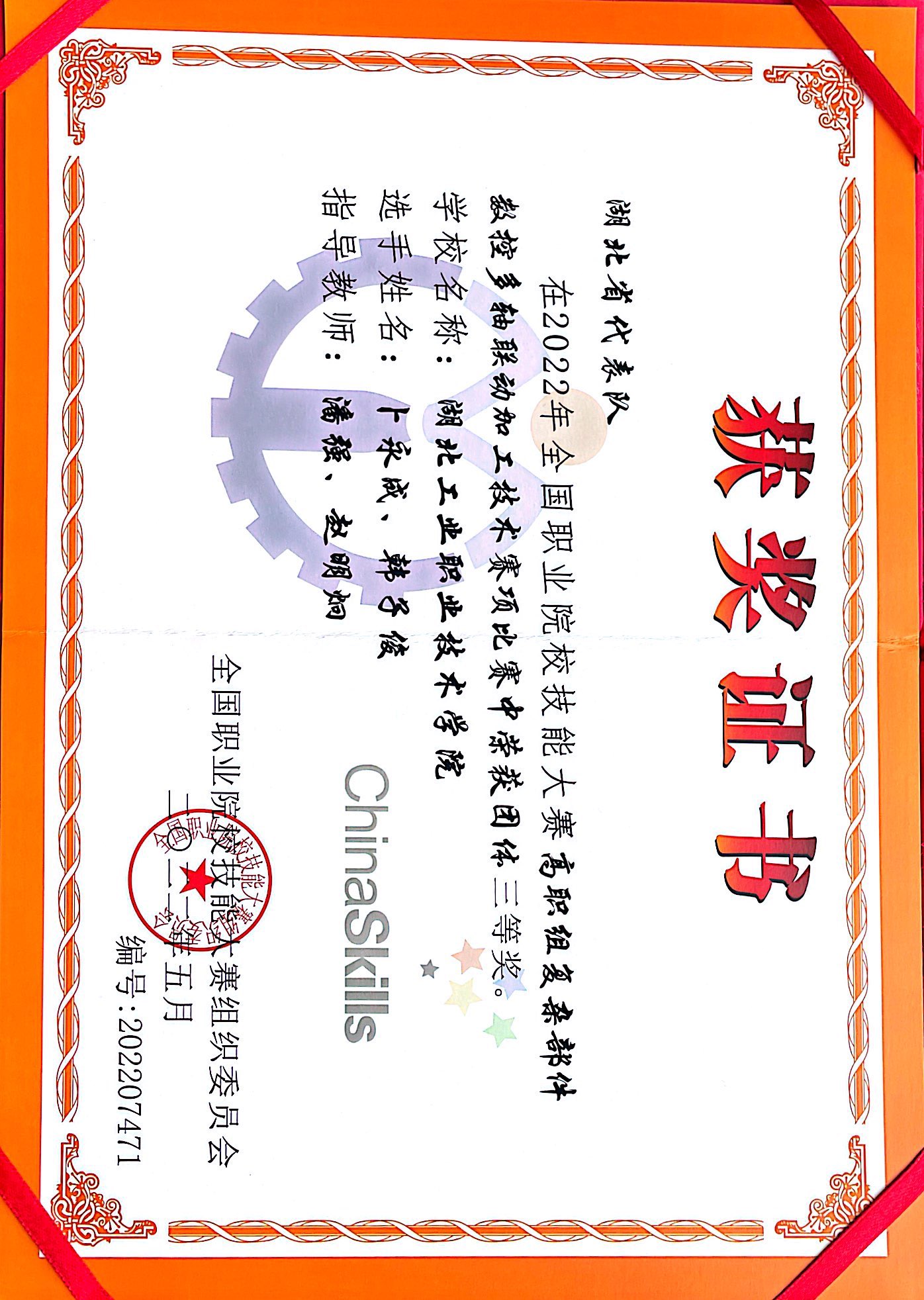2022年7月,在全国职业院校技能大赛高职组复杂部件数控多轴联动加工技术赛项比赛中,365英国上市公司官网代表队荣获团体三等奖。